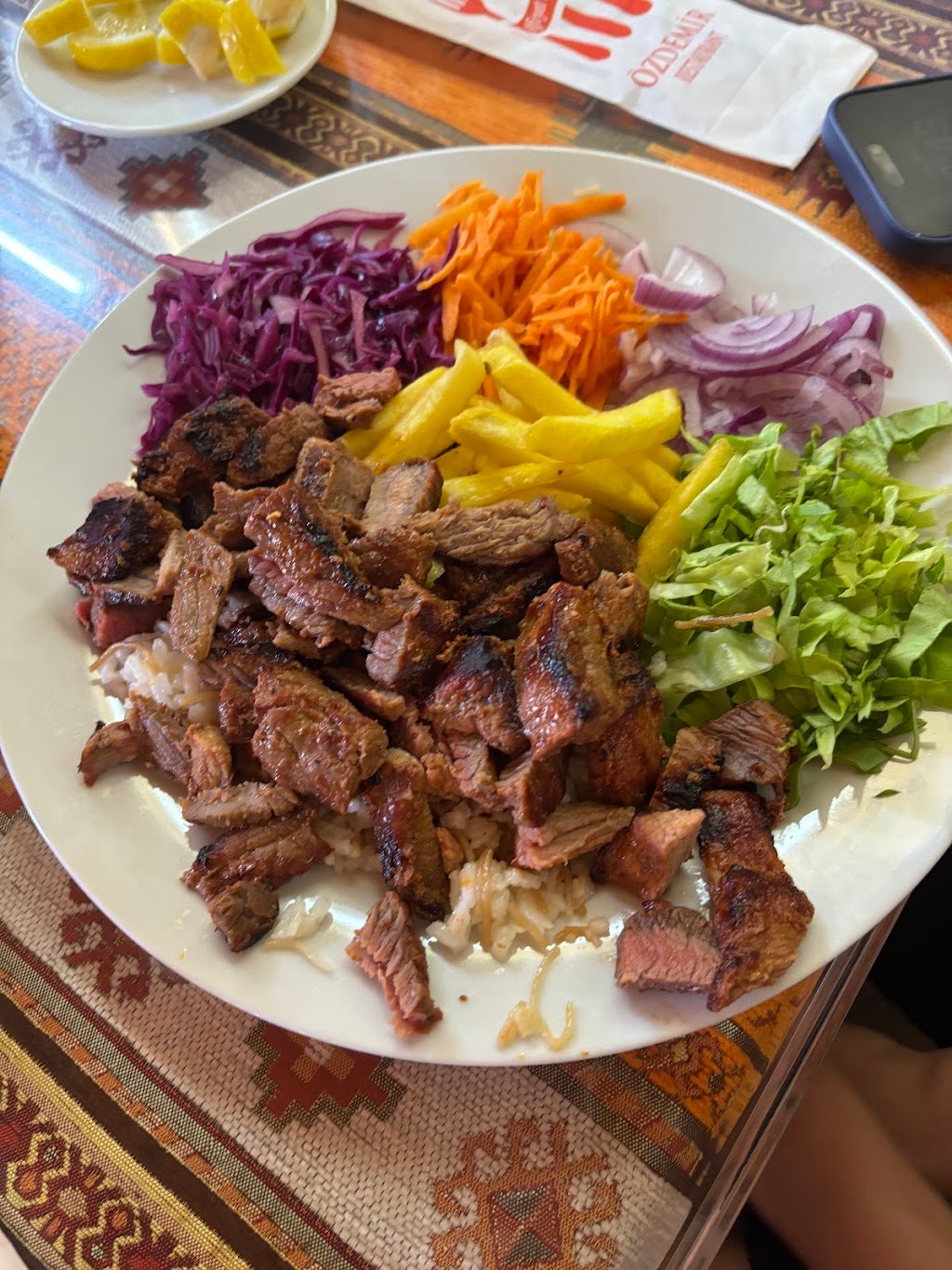 În farfurie, vedetele sunt adana și pide, iar la final merită să lași loc pentru kunefe, lăudat pentru echilibru și gust. Personalul explică preparatele pe îndelete, mesele sunt pregătite atent, iar raportul calitate–preț rămâne corect pentru zona centrală. Dacă îți e poftă de specific turcesc, treci pe la Öz Demir și alege fără grijă.